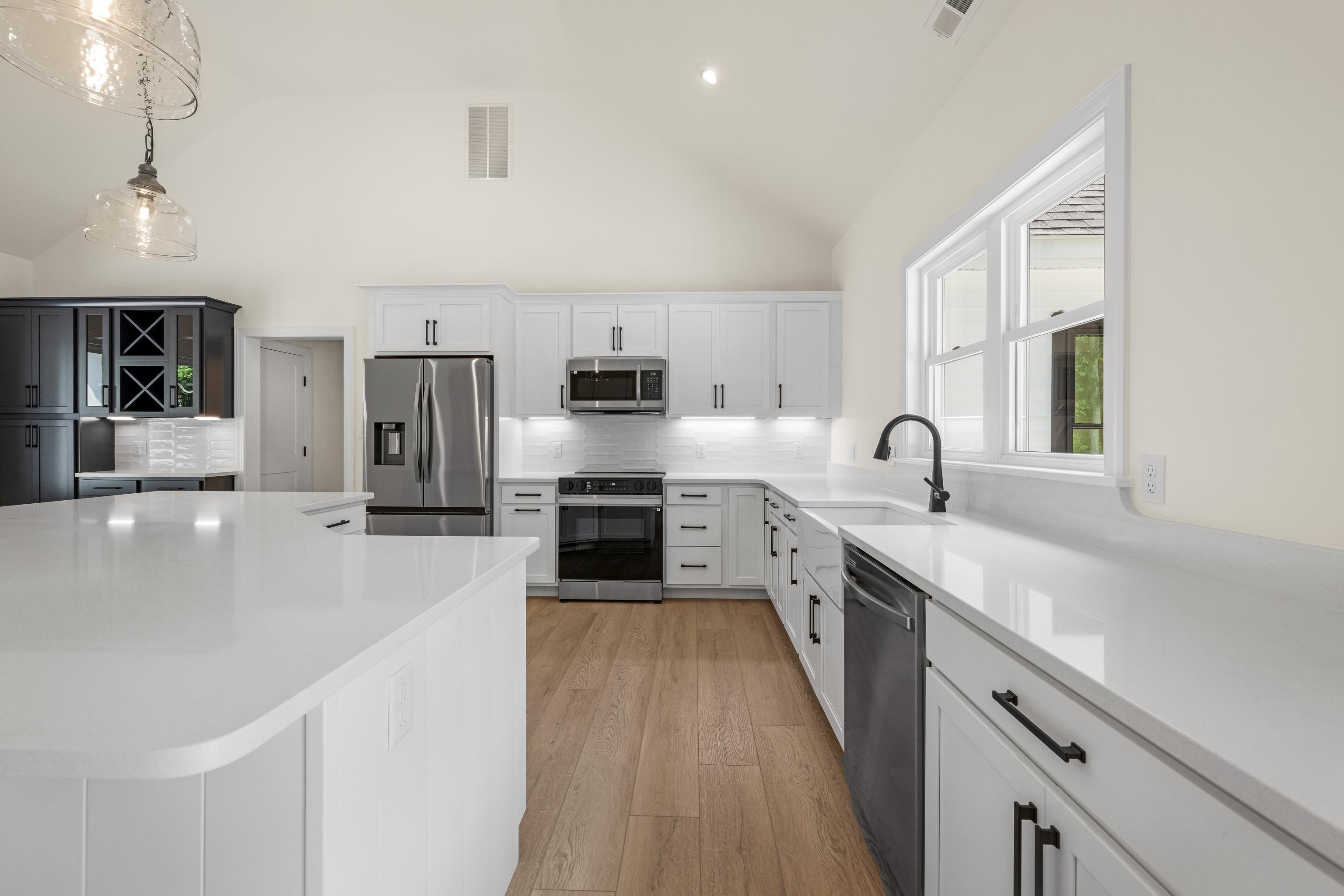 If you are looking for a comfortable home that feels luxurious, and is Carefully planned out, then look no further. The home offers 2500 ft. of living space on a private 1 acre lot yet is conveniently located within a short driving distance to area beaches, restaurants, shopping, churches, schools, and the hospital. This four bedroom 2 1 2 bath home offers a 23 x 23 attached garage. The main living area has a vaulted ceiling and accent wall. The living spaces have cortex vinyl, Hydro plank, flooring and marble tiled baths. The kitchen features a center island with a granite countertop. There are custom white shaker cabinets, a tiled, backsplash, and stainless-steel appliances. The primary bedroom is privately offset to one side of the house away from the guest bedrooms. The primary suite features a walk-in closet and custom bathroom with a tiled, walk-in shower and double vanity for convenience. The powder room is accessible right off of the garage as well as the laundry room. On the opposite side of the home, you will find all three of the roomie guest bedrooms with generous closet, space and a shared hall bath. If you need an office or den one of the four bedrooms could accommodate. The main room has sliding glass doors from the living space onto a private rear deck. There is plenty of room for a swimming pool, shed, playset... and loads of privacy