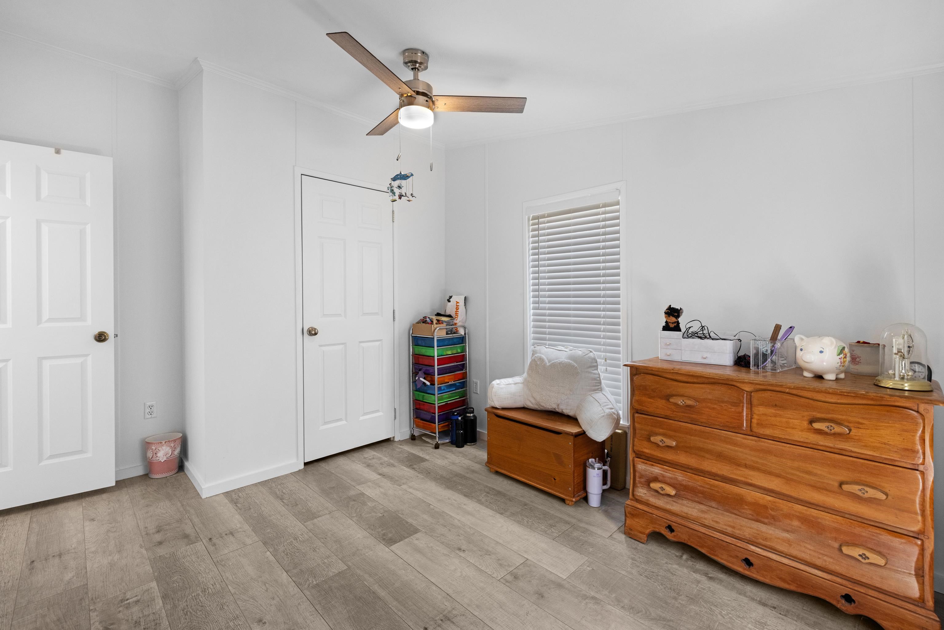Congratulations, you've found your dream home by the bay! Property is only one and a half blocks from the beach access right at the end of the street. This freshly painted beauty offers three bedrooms, two bathrooms, living room, family room and dining room. Nice sized bedrooms with a master bath and walk-in closet round out the roomy 1680 sq ft. Move in condition with brand new floors and ceiling fans to compliment the fresh paint throughout. Outside features include a deck for entertaining, 50+x100 side yard with uses limited only to the imagination, privacy trees, two storage buildings, fenced yard and a well to help save on watering costs. With the home centered on a 50 foot parcel of the 100 ft wide lot 105 Eldredge provides opportunity for serious expansion, pool, pole barn or possible subdivision (seller has a survey marking remaining 50x100 for future development but township combined the lots at some point. Buyers' responsibility to explore this option with the zoning board.)