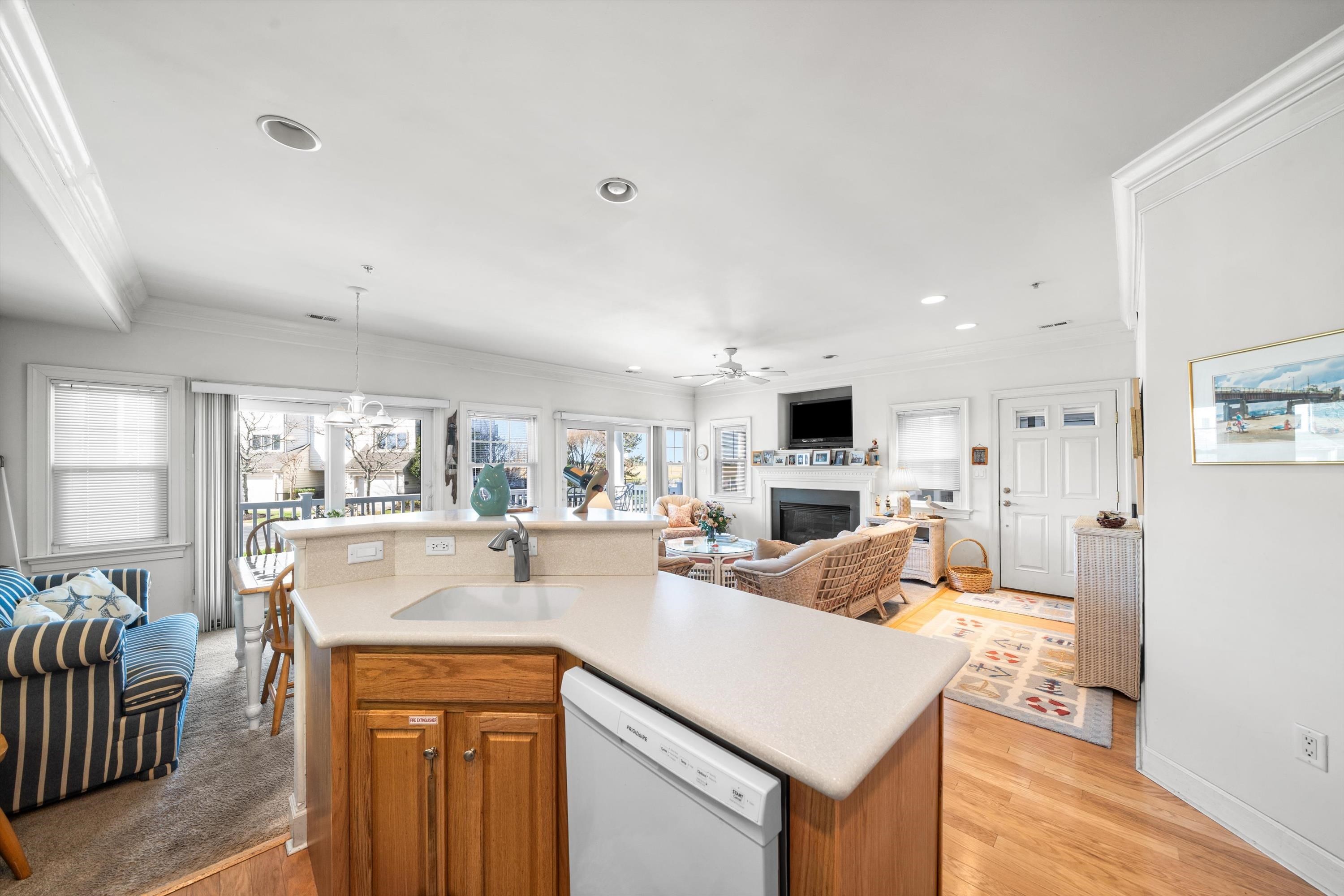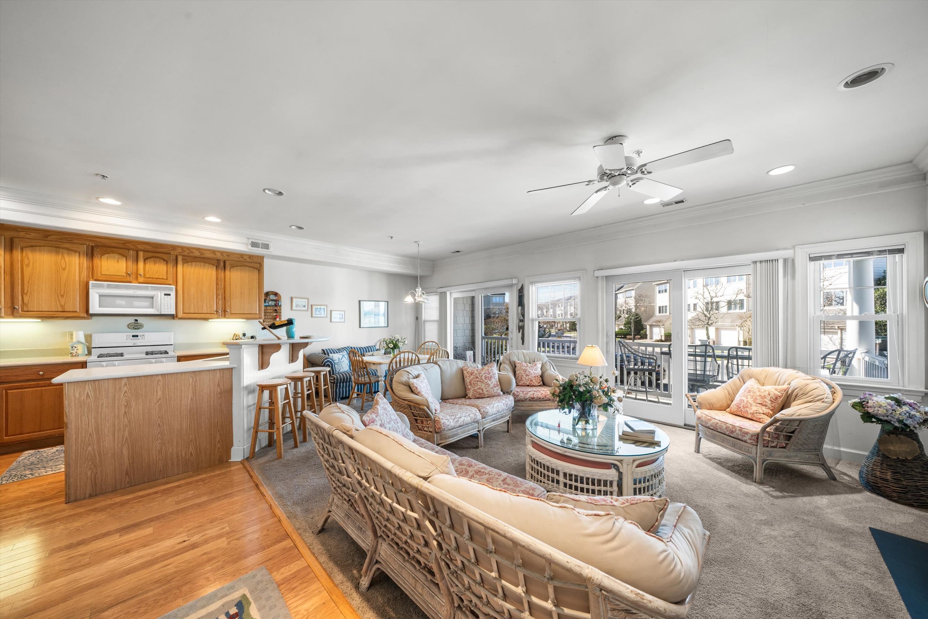 Rare First-Floor 4-Bedroom Bay View Condo in Windward Harbour Avalon, NJ This beautifully maintained 4-bedroom, 2-bath condo in the highly sought-after Windward Harbour community offers the perfect blend of comfort, convenience, and coastal charm. Located on the first floor of Building D, this unit boasts expansive bay views from the front deck, living room, and dining area, and garden views from the rear deck off the master and guest bedrooms. The open-concept layout features 9 ceilings, a gas fireplace, and a center island kitchen ideal for entertaining. The primary suite includes a private bath, while the other bedrooms share a spacious hall bath. Two of the bedrooms open to a peaceful rear deck. Completely rebuilt in 2006, Windward Harbour offers maintenance-free living with updated decking, railings, paver walkways, landscaped grounds, and a new bulkhead and docking areas. Enjoy a wealth of amenities including Bay access (limited) for kayaks, SUPs, etc. Large, heated pool and hot tub. Fishing crabbing pier at the end of 8th Street. Courtyard entrance and two porches (front & rear). Bike racks, grilling areas, and lovely garden spaces. Ideally located near Avalon's largest family recreation area, with tennis, basketball, soccer, lacrosse, and football fields, plus a playground all just steps away. Also close to beaches, shops, dining, and the yacht club, this turnkey, fully furnished unit (less wall art and personal items) is ready to enjoy for summer and beyond. Don t miss this rare opportunity in Avalon s quiet and desirable north end call to schedule your private tour!